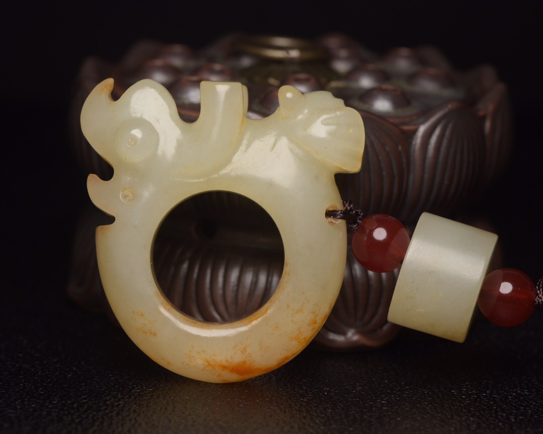 - 【超珍館蔵】和田玉製 細密彫 豬龍 置物 古賞物 古美術品 稀少珍蔵品