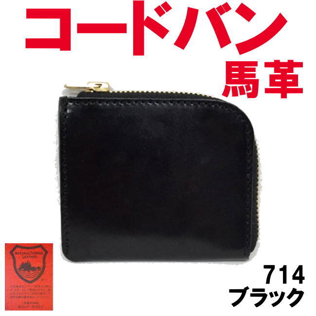 - ブラック コードバン 馬革 栃木レザー 714 L字ミニウォレット 財布 日本製
