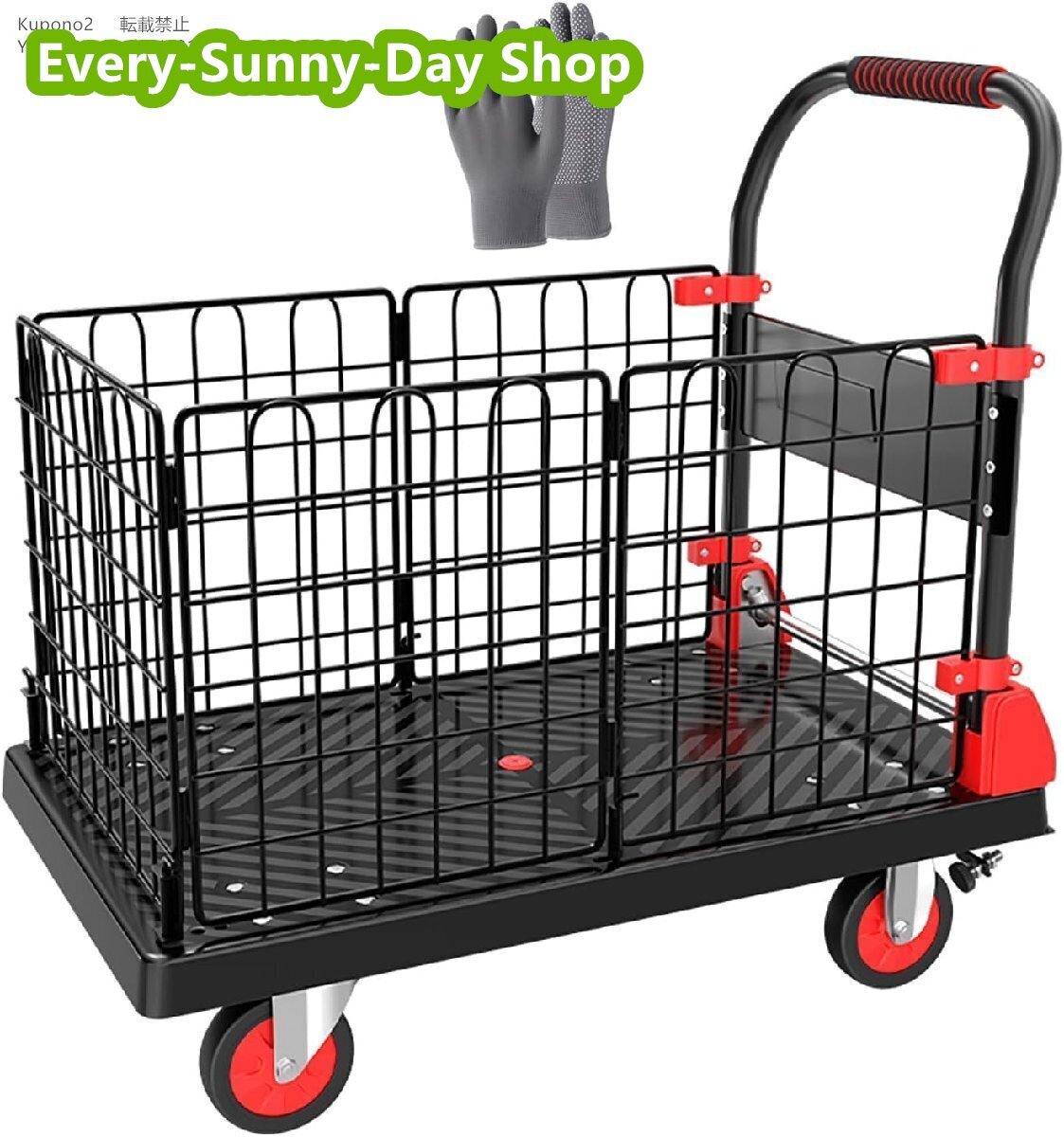 - カゴ台車 大容量 メッシュ台車 カゴ付き台車 台車 折りたたみ式 カート台車 網籠車 積載運搬車 ブレーキ付き 耐荷重400kg 90*60cm