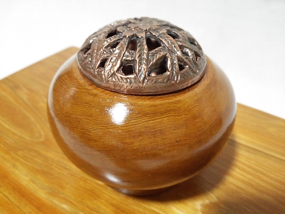 - ★【一美堂】★屋久杉製★美しい杢目『香炉』★名品★台付☆
