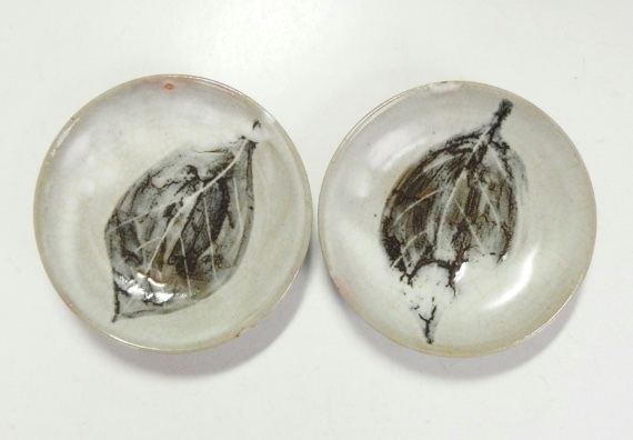 - 荒川豊蔵 木の葉紋小皿 二枚 水月窯初期 黒田陶々庵識箱付 本物返品OK 250323−11