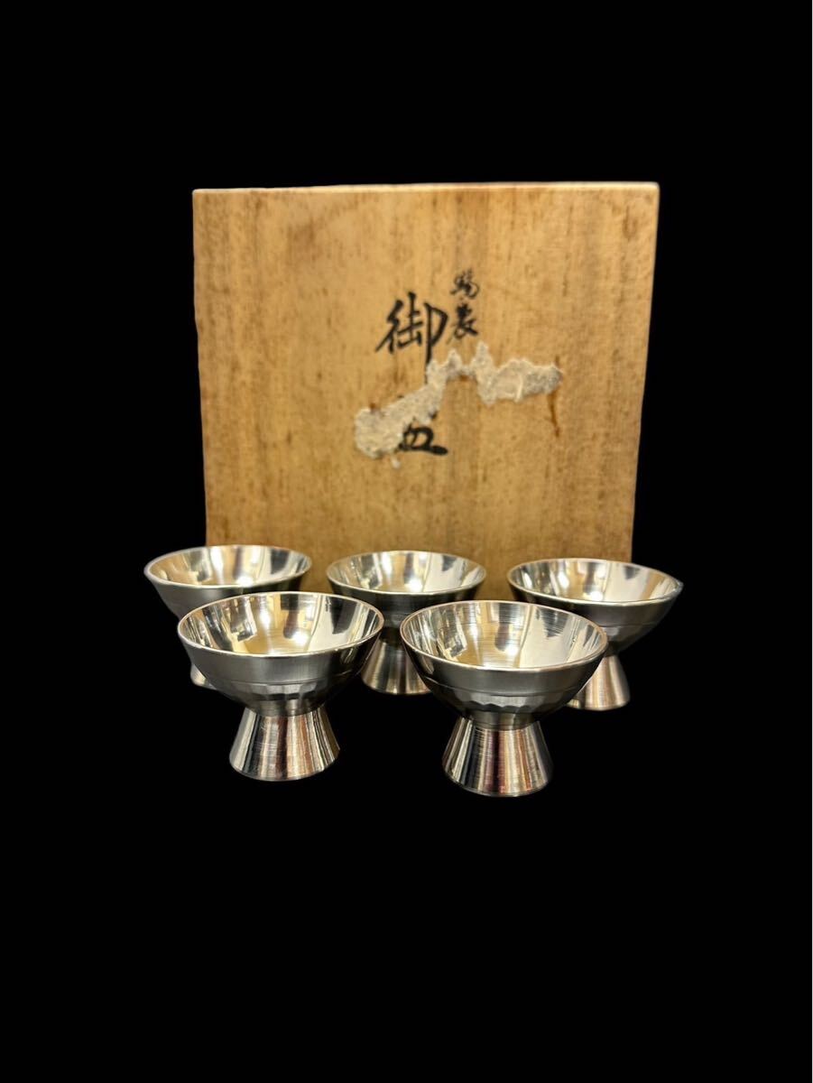 - A10047 未使用品 本錫 浪華 錫半造 錫製/酒器 お猪口 置き旧し