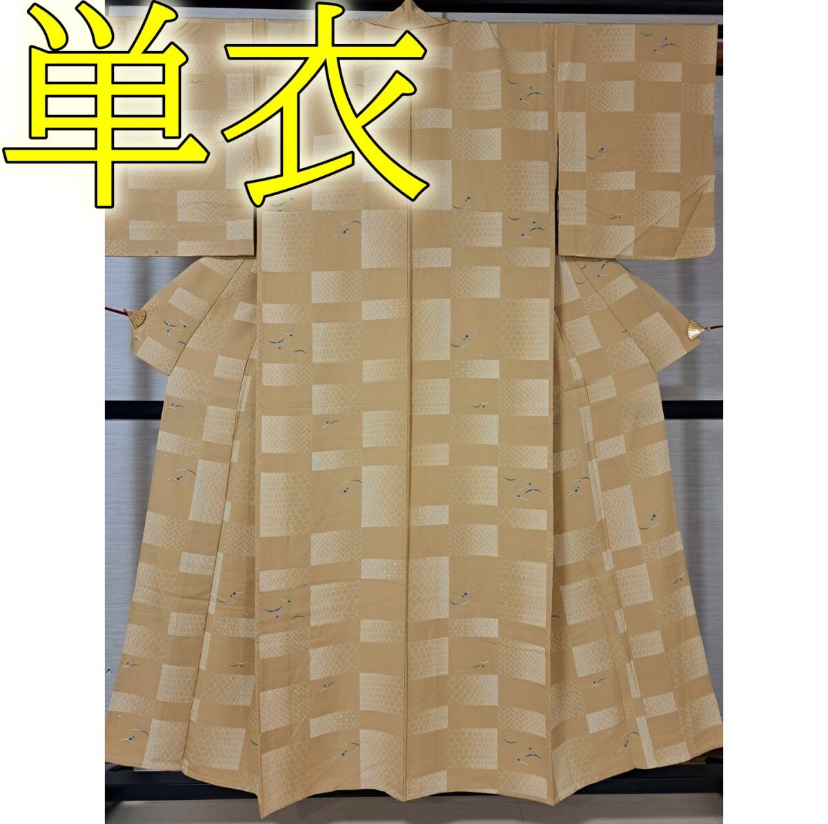 > ■着物の越田■裄64.5身丈154.5 正絹 小紋 単衣 ★美品★ 市松 露芝 ■ひ24R02a
