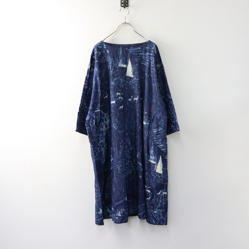 - 45R 45rpm フォーティファイブアール ワンダーランドプリントの馬比古ドレス 0/インディゴ ネイビー ワンピース コットン【2400014340754】