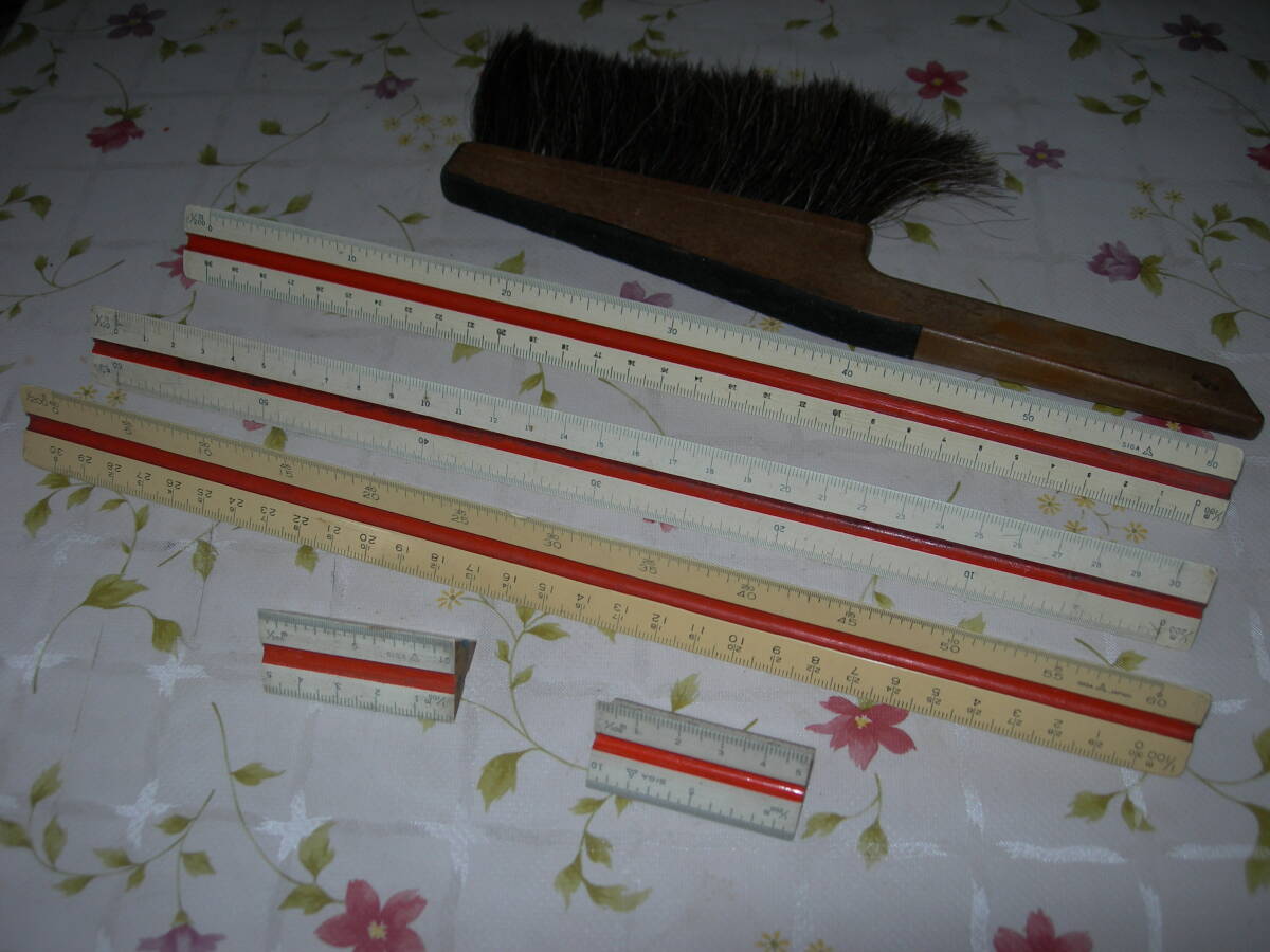 - ★ 製図道具 三角スケール30cm 3本 小5cm 2個 刷毛箒 1個 格安送料600円 中古