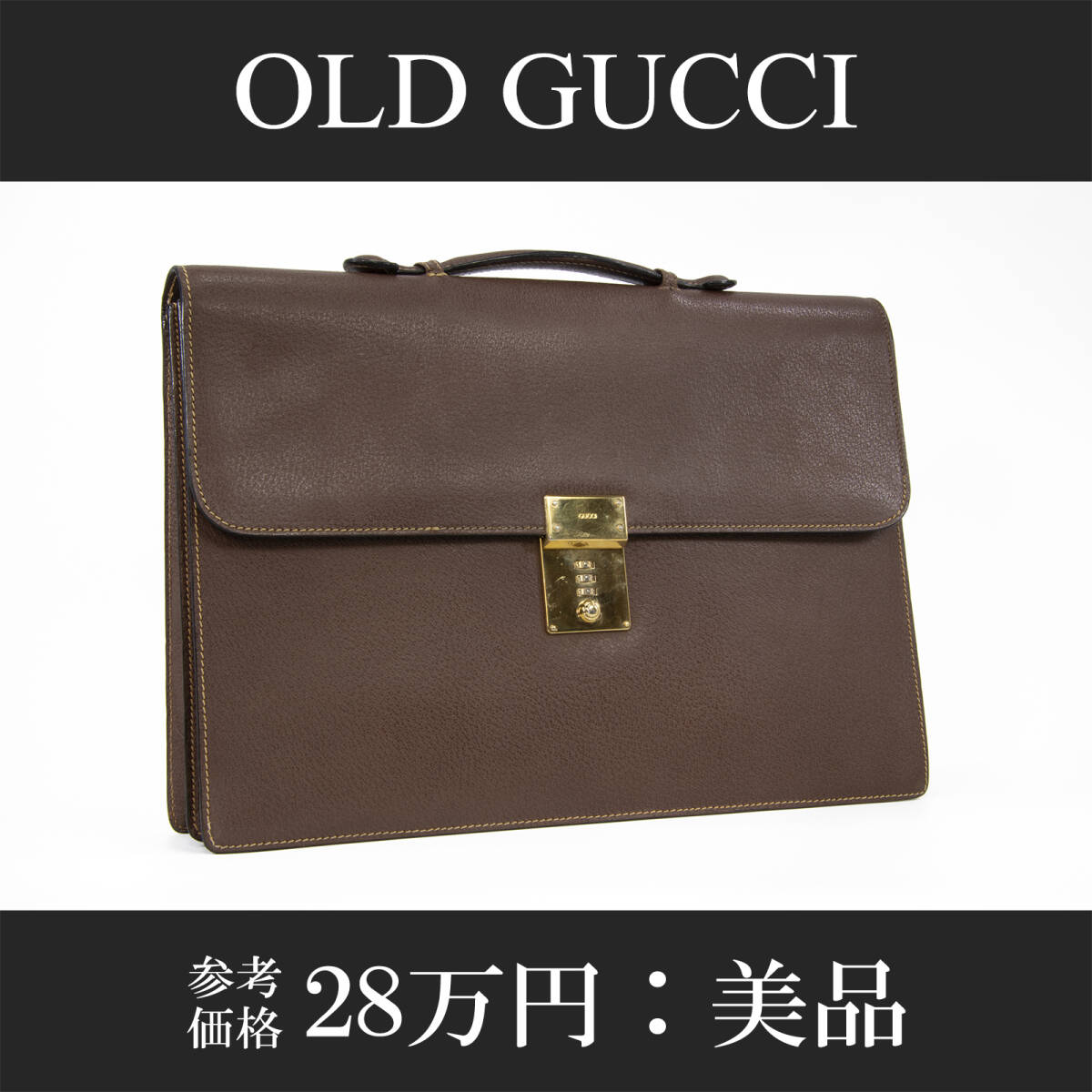 - 本物 送料無料 オールドグッチ ビジネスバッグ ブリーフケース メンズ 茶色 珍しい A4対応 大きめ 大容量 ロゴ 本革 綺麗 鞄 バック A823