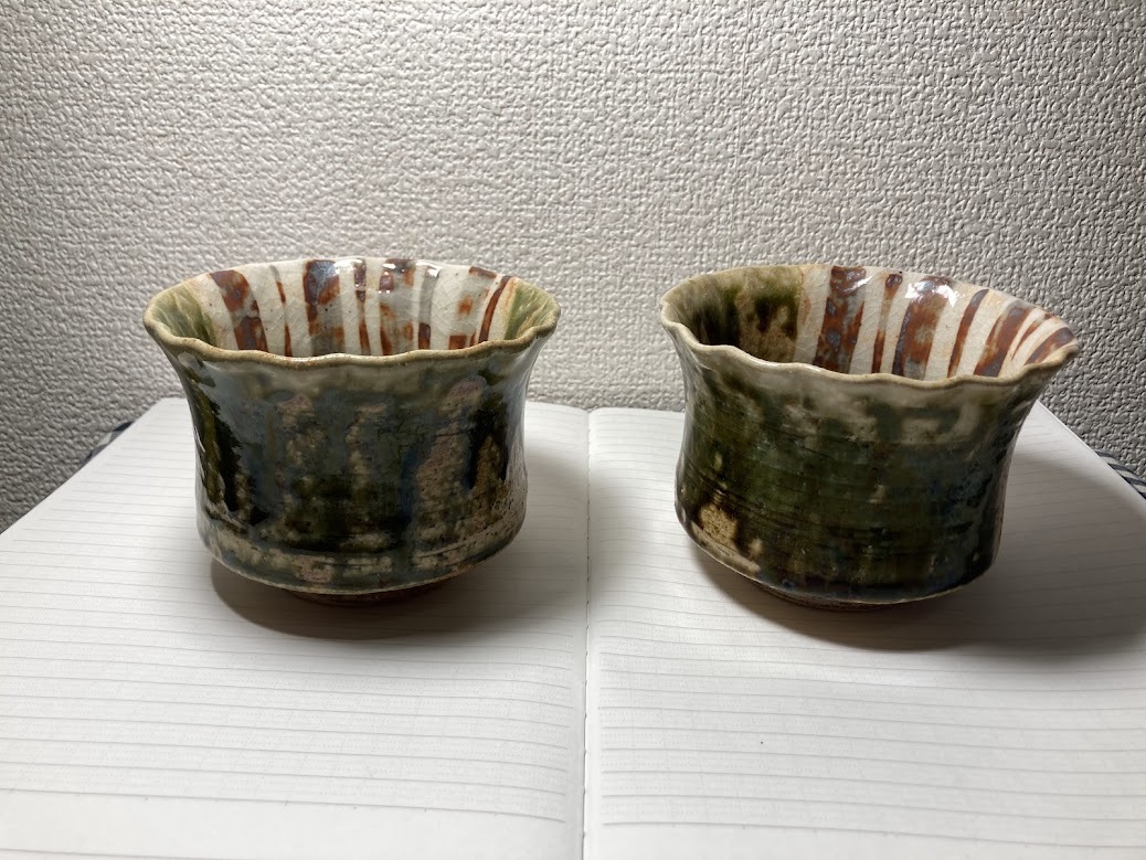 - 魯山人 写しの2個 【未使用品】 織部錆十草 輪花淵向付揃 250309−11 返品OK