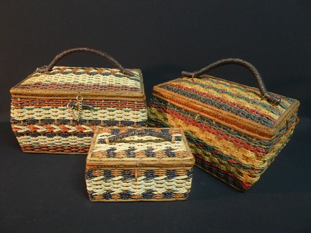 - C◆418 昭和レトロ ジャンク 刺繍裁縫箱3点 針箱 蓋付 小物入 収納 道具箱 バスケットボックス かご /140