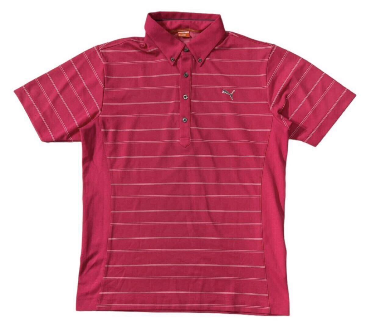 - 送料無料 大きいサイズ ■ PUMA GOLF プーマゴルフ ■ ロゴ刺繍 ボーダー柄 ドライシェル 吸水速乾 半袖 ボタンダウン ゴルフ ポロシャツ