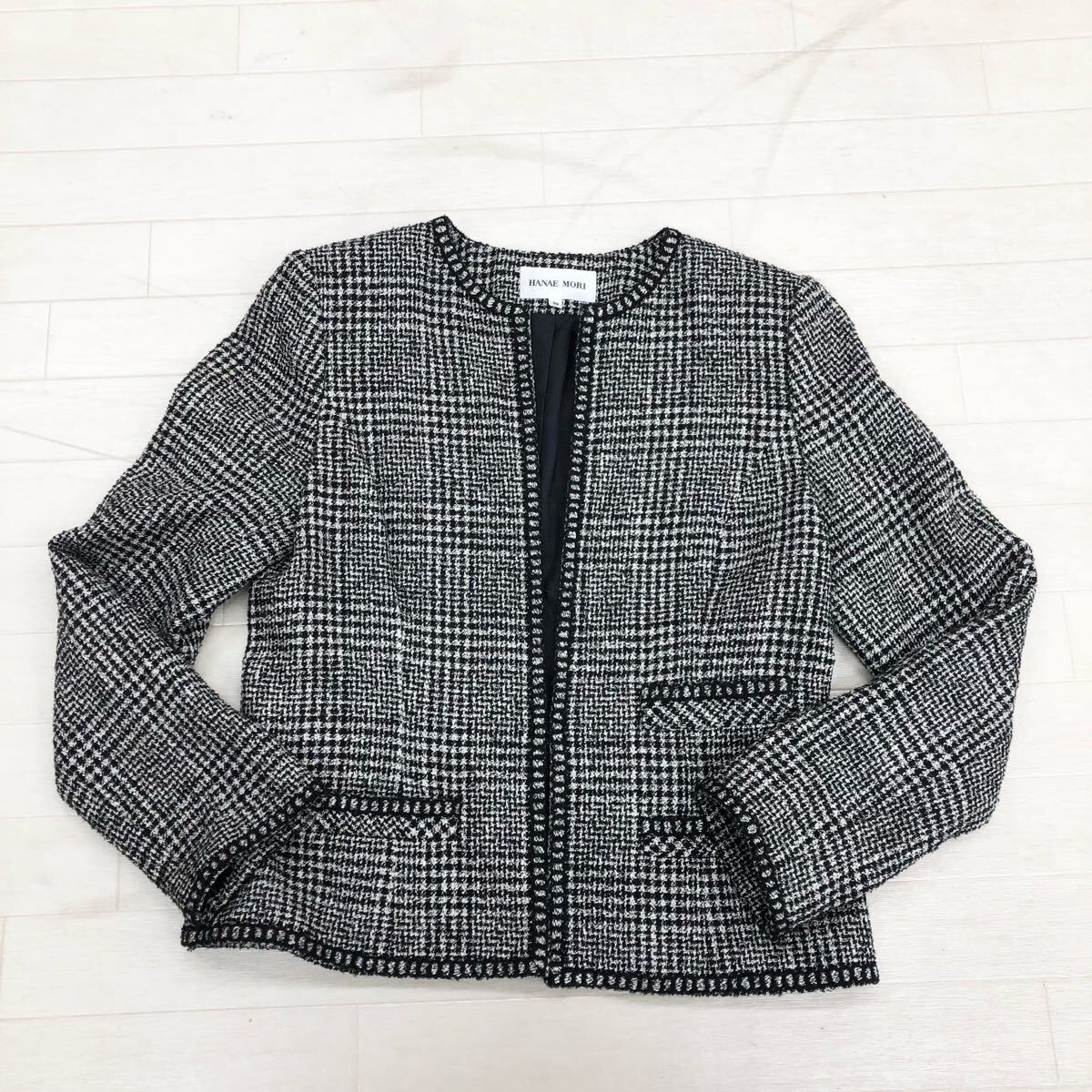 > M10〓 HANAE MORI ハナエモリ ノーカラージャケット レディース サイズ38 ブラック ホワイト トップス 上着 フックボタン