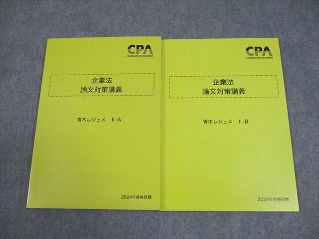 - CPA会計学院 公認会計士講座 企業法 論文対策講義 青木レジュメII-A/B 2024年合格目標 未使用品 計2冊 014S4D