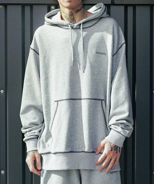 - ●美品 Subciety サブサエティ プルオーバーパーカー GRY サイズXL