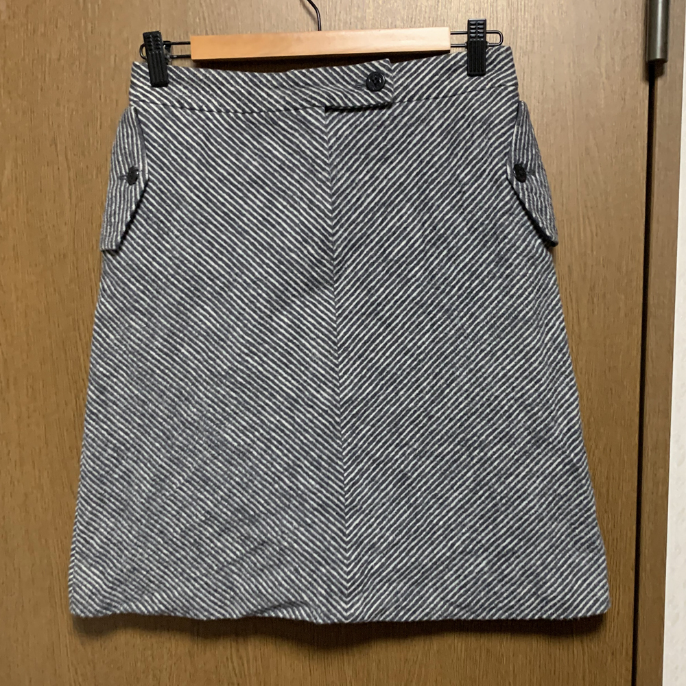 > M【SHIPS|台形スカート】シップス グレー×ホワイト 縞々 ボトムス ミニスカート 厚手スカート イカリマリンボタン