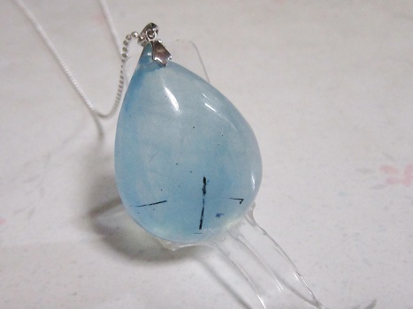 - ブラックトルマリンインアクアマリンのドロップ型シルバーペンダント