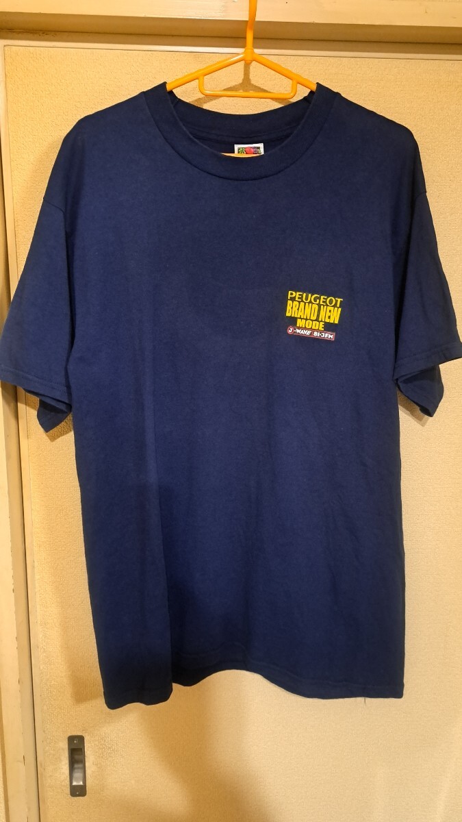 > PEUGEOT プジョー Tシャツ 表記サイズ=L(説明欄実寸あり) ボディー=FRUIT OF THE LOOM USA製 ヘビーコットン 紺 古着美品