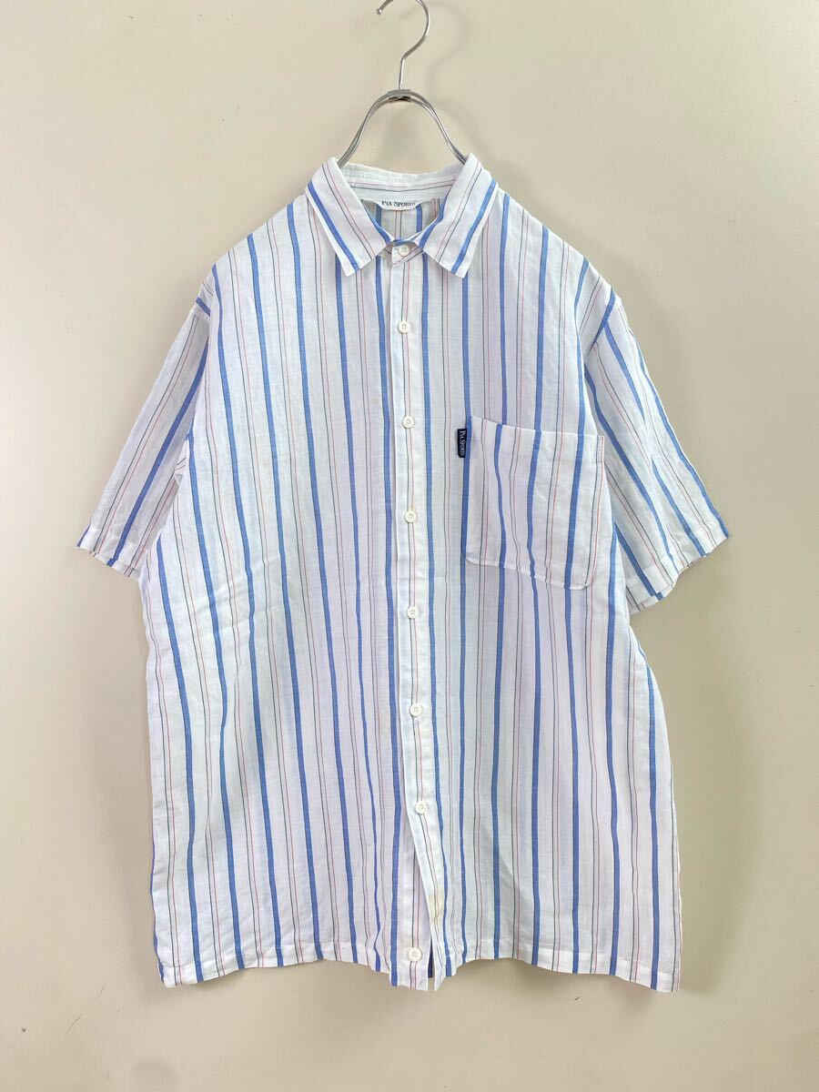 - ● PIA SPORTS *涼し気な薄手リネン混* 半袖シャツ 白 サイズ4 (L~LL相当) ◆ ストライプ ピアスポーツ ◆W5 WいDE7-38