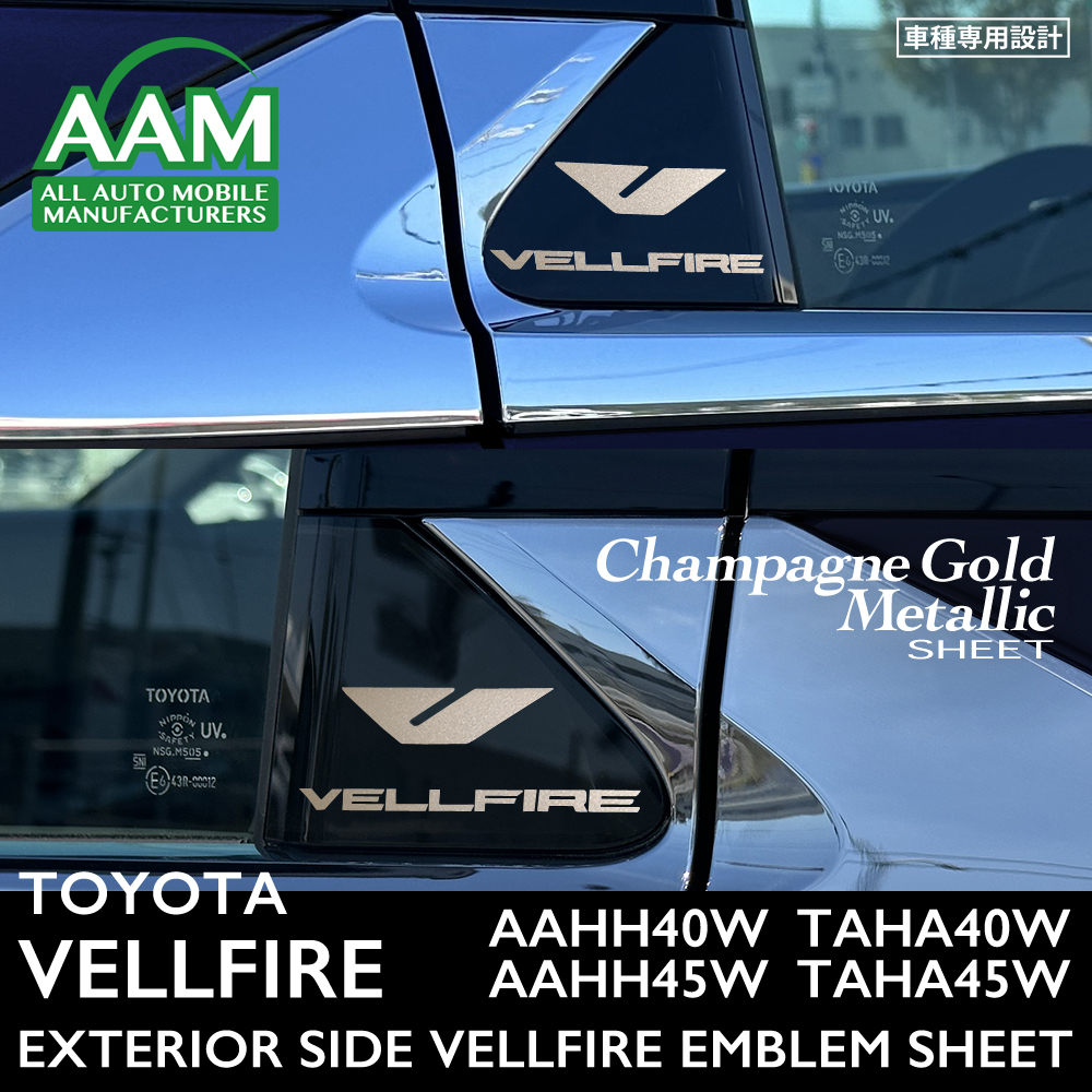 > トヨタ ヴェルファイア AAHH40W/AAHH45W/TAHA40W/TAHA45W エクステリア シャンパンゴールドメタリックシート (サイドエンブレムVELLFIRE)②
