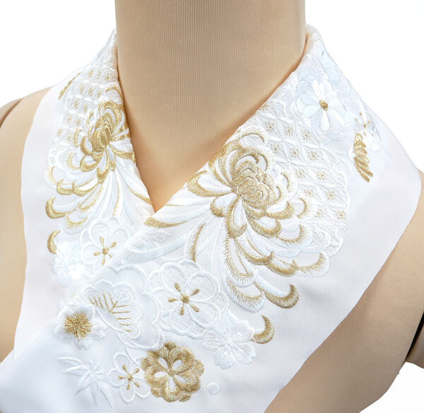 - 振袖用 刺繍 半襟 he-008 白 金 刺繍入り 振袖 成人式 結婚式 半衿 訪問着