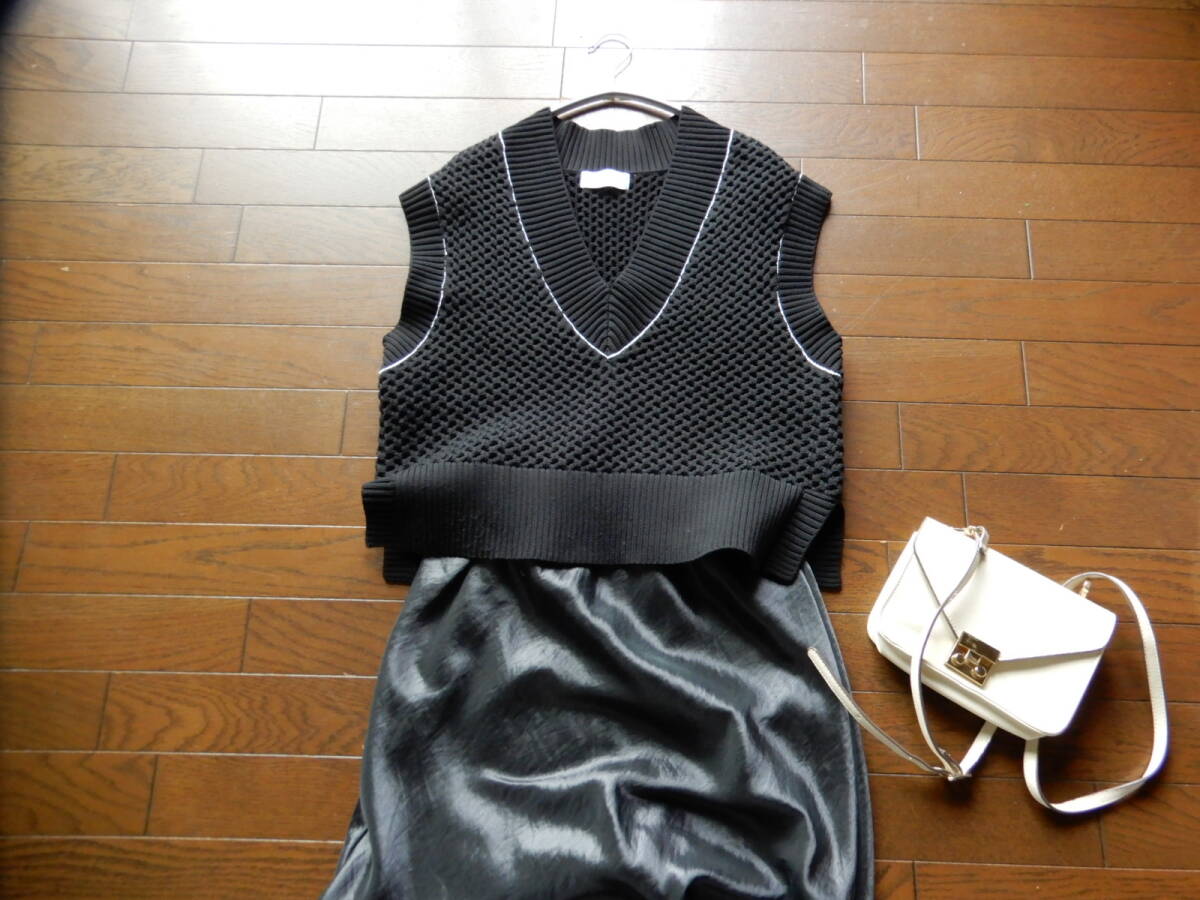 - 【simplicite/シンプリシテェ】’21 大人可愛いゆったり身幅ライン入り短丈ニットベスト 黒 白 IENA・スピック