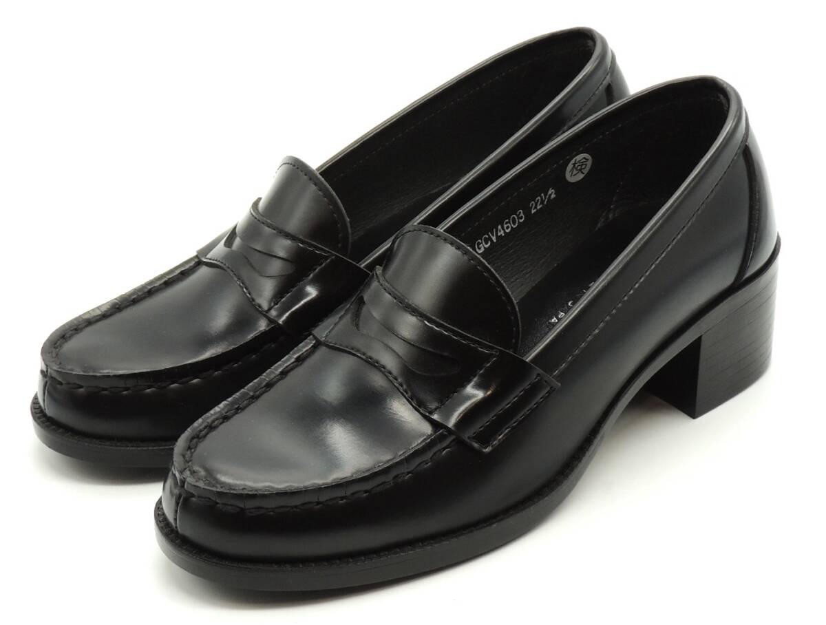 > ハルタ ローファー 学生 通学 通勤 フォーマル コインローファー ヒールアップ HARUTA 4603 ブラック 24.5cm
