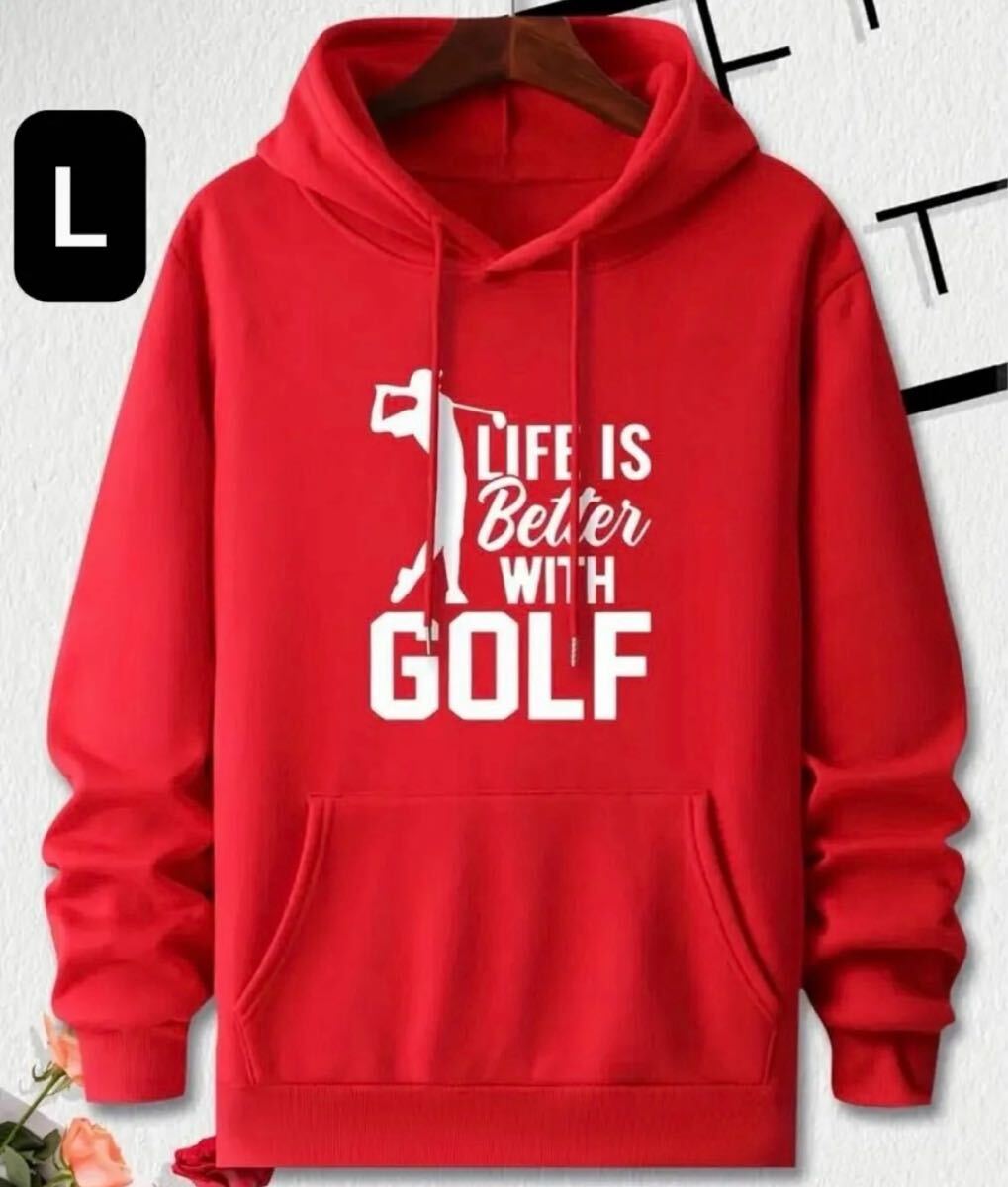 - 【新品/Lサイズ】ゴルフウェア レッド 長袖 パーカー メンズ