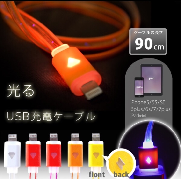 > 送料無料!【3個組】暗くてもどこにあるかすぐわかる★存在感バツグン!綺麗に光る★☆iPhone用USBケーブル