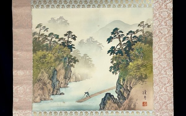 - TM10003[真作]荒川勝英「嵐峡」掛軸 絹本 山水図/日本画家 日本画 日本美術 新潟の人 共箱 二重箱