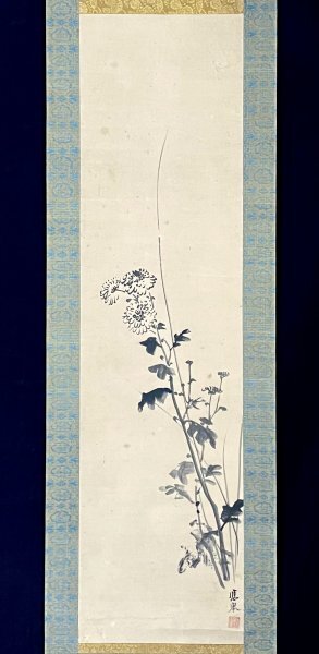 - HM9503[模写]円山応挙「菊図」掛軸 紙本 花図/江戸中期の画家 円山派の祖 美術品 合箱 二重箱 人が書いたもの