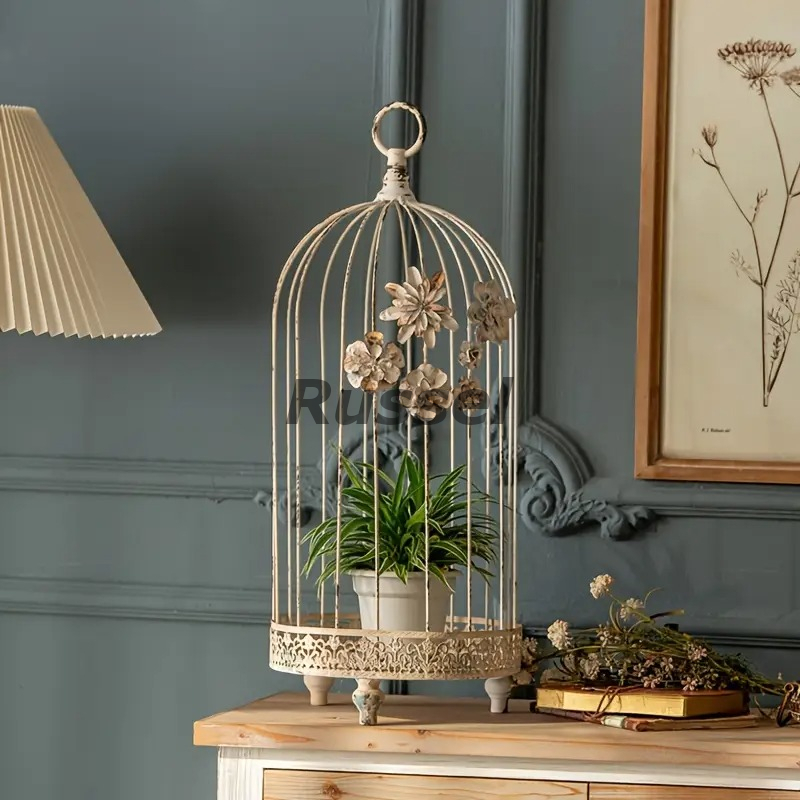- 鳥かご アンティーク調 ヴィンテージ調 ヨーロピアンスタイル ホワイト キャンドルホルダー プランツケージ インテリア雑貨 装飾 屋内 屋外