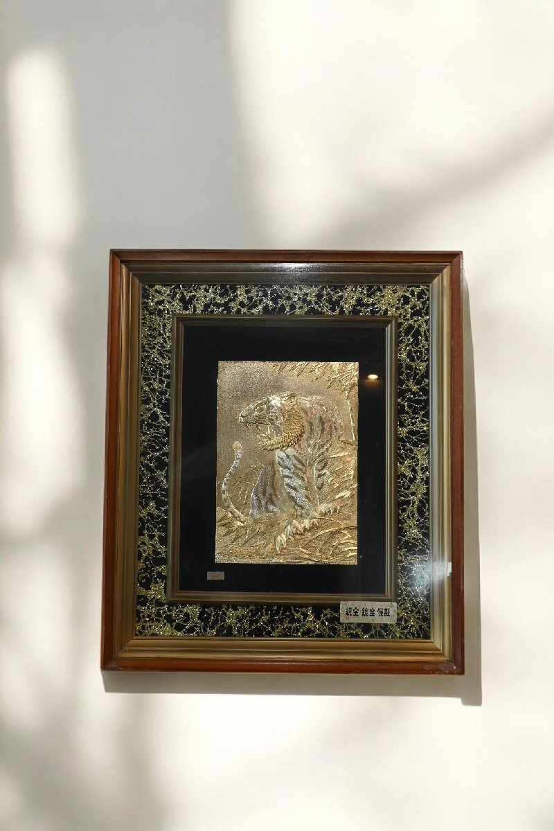 - ○金色の寅のレリーフ 24kgp 木製額 加工画 純金メッキ 豪華 和のアート ディスプレイ 招福 古道具のgplus広島 2503i