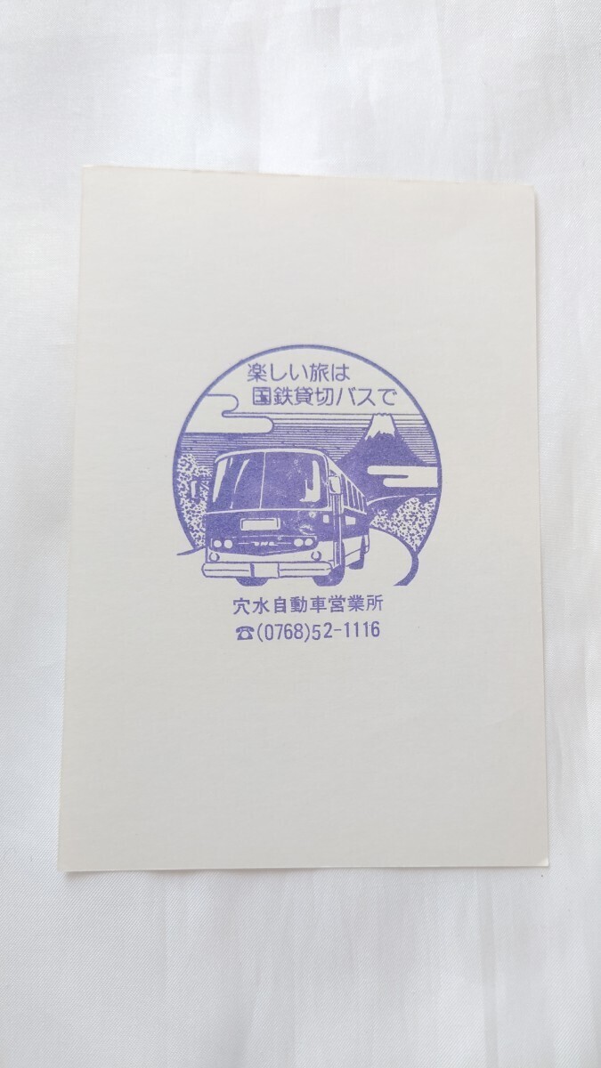 - ▽国鉄バス穴水自動車営業所▽楽しい旅は国鉄貸切バスで▽スタンプ押印