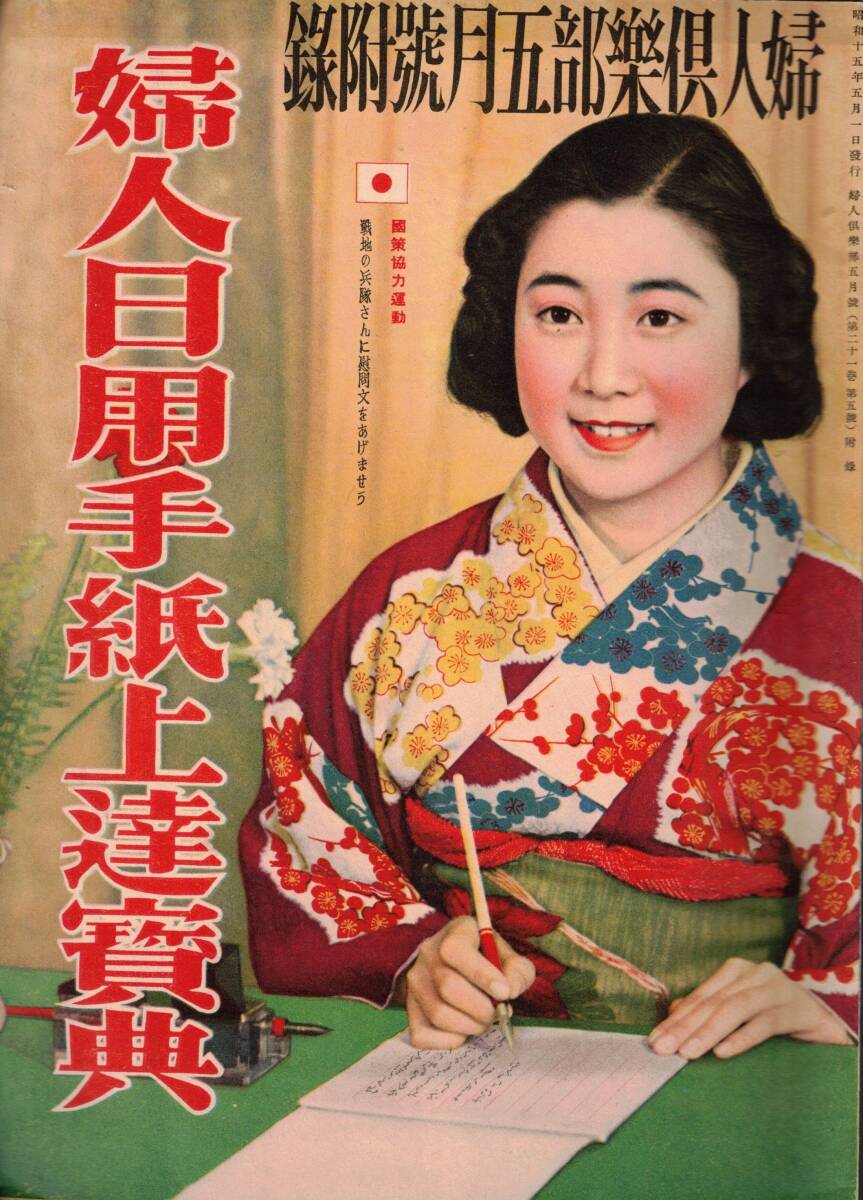 > 婦人日曜手紙上達宝典 表紙:国策協力運動ー戦地の兵隊さんに慰問文をあげませう 戦時下の手紙の書き方=八波則吉等 自他呼び方・習字