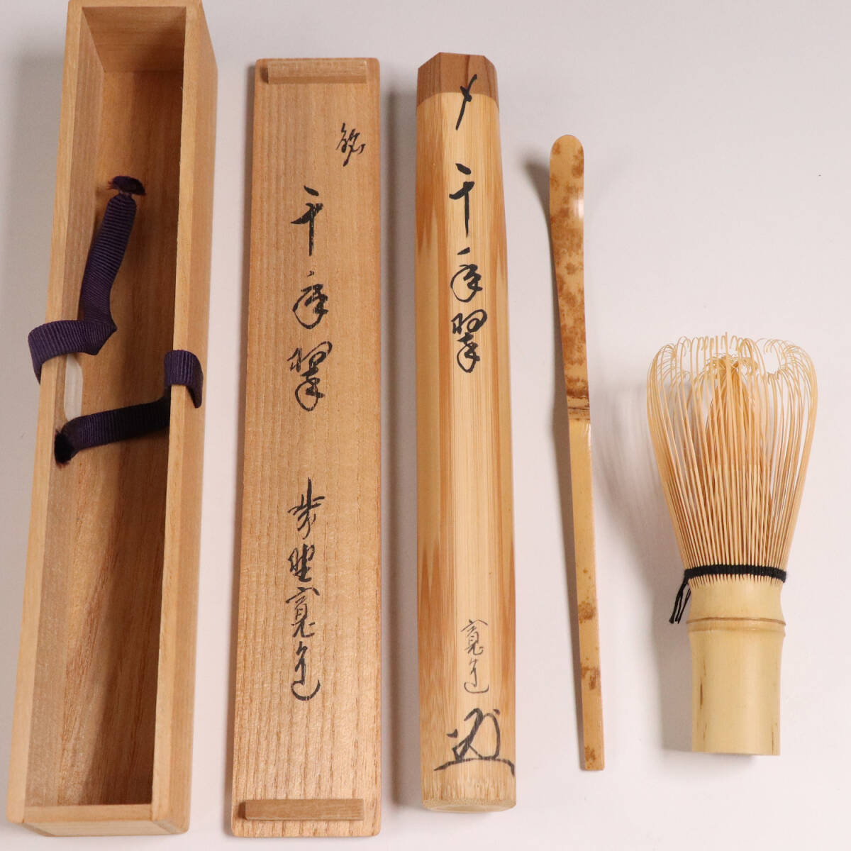 - 【CM96】茶道具 大徳寺 藤田寛道 銘「千年翠」竹茶杓