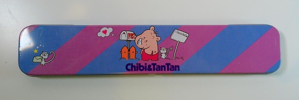 - ⑤ 1円から売り切りスタート・・ 缶ペンケース ペンケース 昭和レトロ 小物入れ ブルーxパープル 未使用 j a201h0324