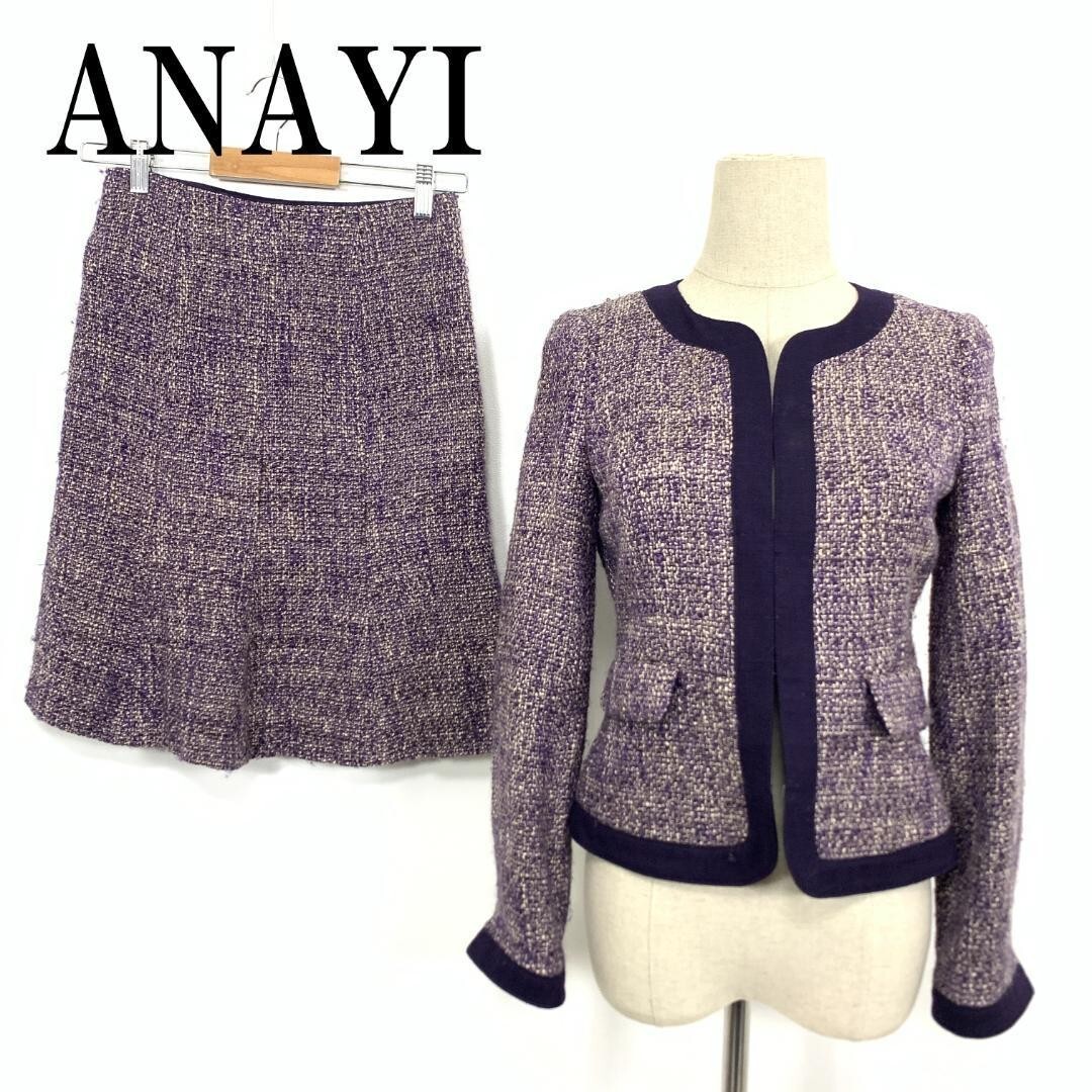 - LA5381 アナイ ツイード スカート セットアップ パープルANAYI ノーカラージャケット フック型留め具 36