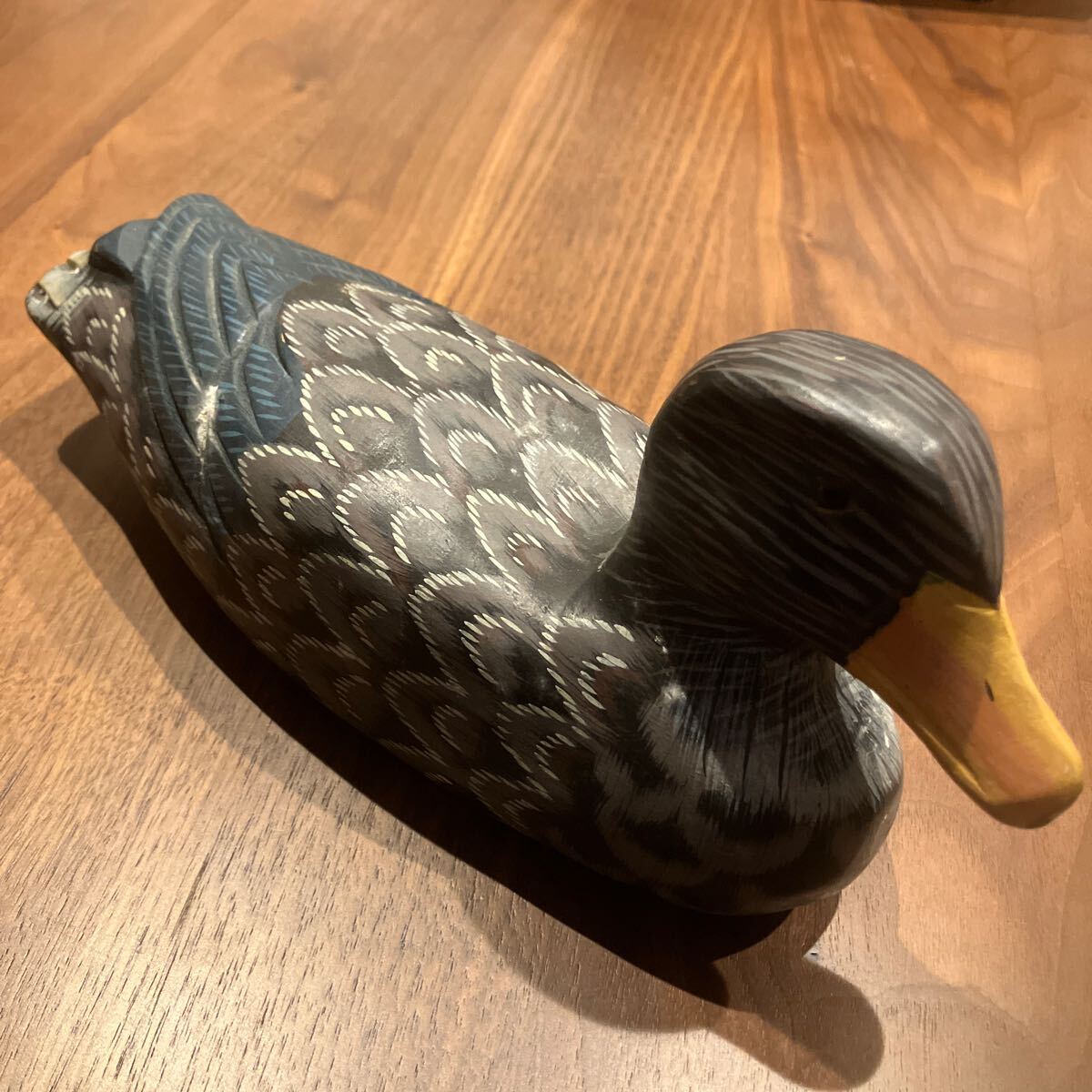 - 鴨 デコイ 卓上 インテリア 蚤の市 置物 かも 美術 アンティーク 骨董 木製 オブジェ 新品