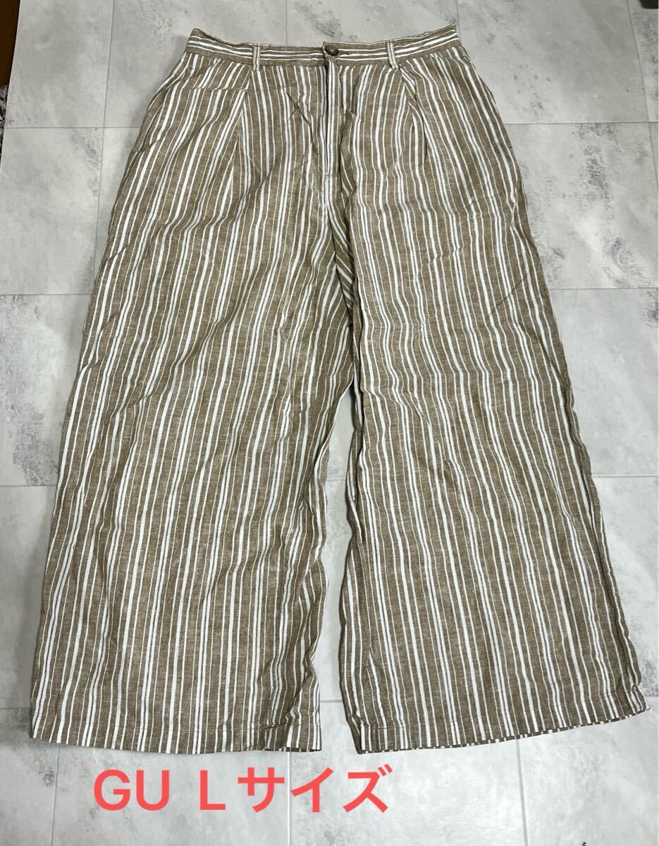 - GU ジーユー リネン&コットン 天然素材 ワイドパンツ Lサイズ