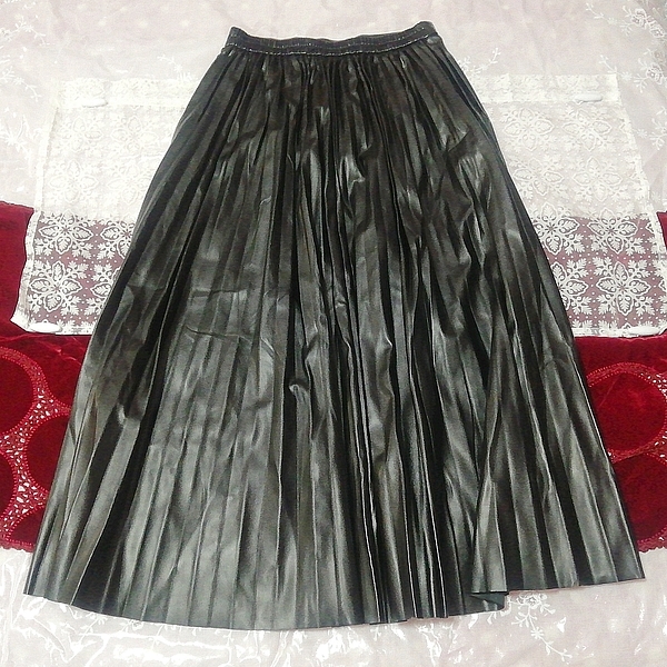 > カンボジア製黒合成皮マキシロングスカート Cambodian black synthetic leather maxi long skirt