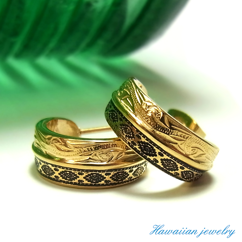 > ★インスタ映え★ハワイアンジュエリー★カリフォルニア★アレルギー&温泉&海水浴OK★ステンレスゴールドピアス★オルテガ柄&スクロール