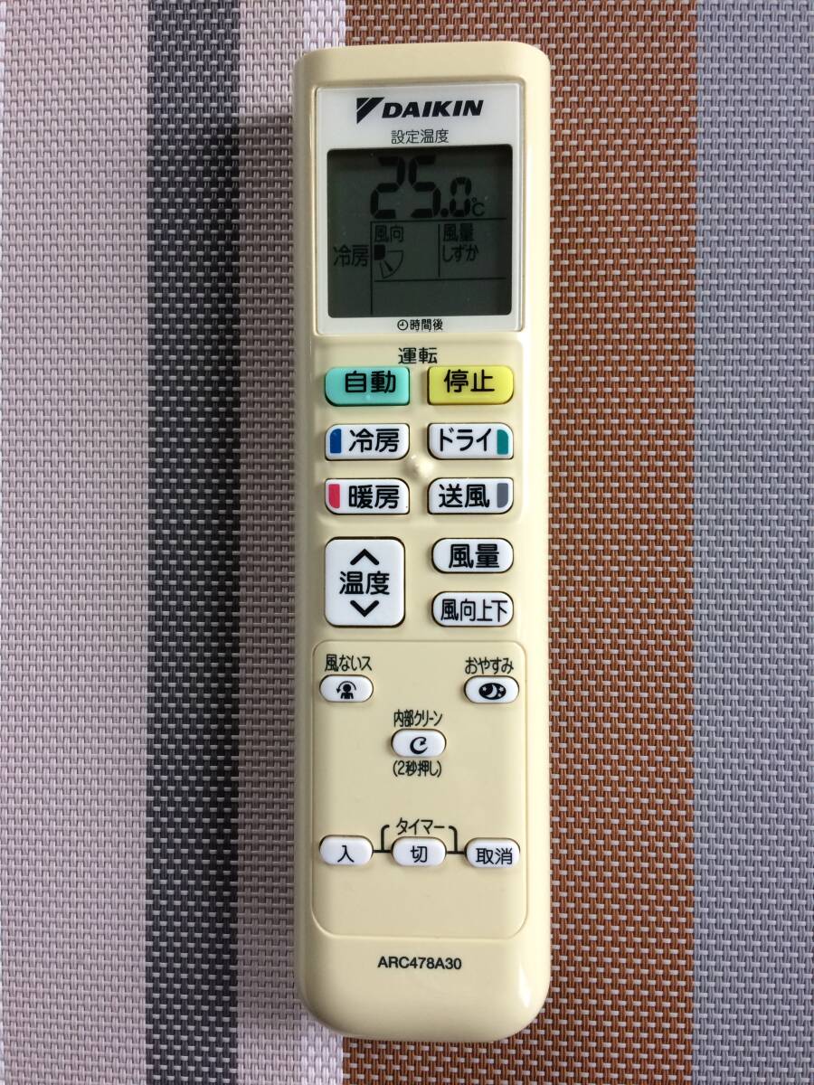 - 黄ばみあり★送料無料★DAIKIN★ダイキン★純正★エアコン用リモコン★ARC478A30★中古★動作品★返金保証あり★