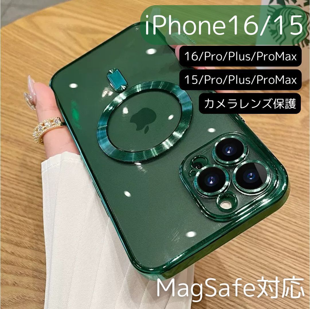> ★グリーン・iPhone16 iPhone15 ケース Pro Plus ProMax magsafe マグセーフ スマホケース ガラスレンズ保護 全10色