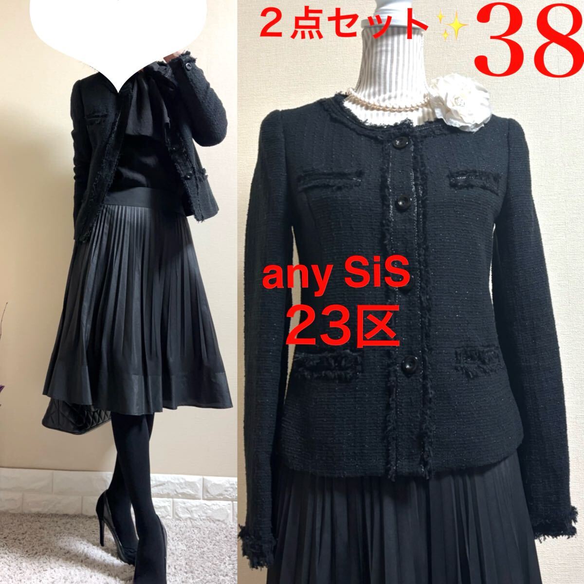 > M スーツ!any sis エニィスィス コットンツイード ノーカラージャケット 23区 ニジュウサンク スカート 黒 通年 七五三 入学式