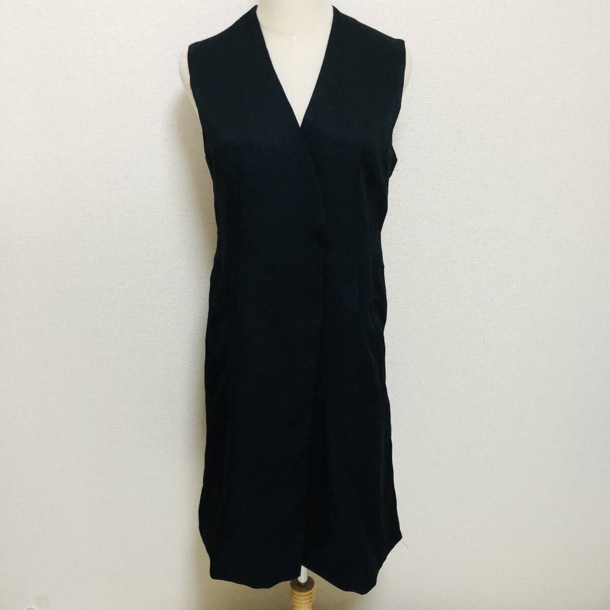 - WS0537 Reine Hoshi 上質ブラックジレ ロングベスト Vネック サイドスリット サイズM 春秋 オフィス 通勤 カジュアル 日本製 裏地付き