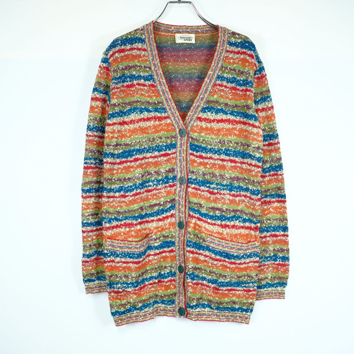 > MISSONI SPORT イタリア製 総柄ニットカーディガン マルチボーダー ミッソーニ スポーツ セーター デザイン アート 古着屋