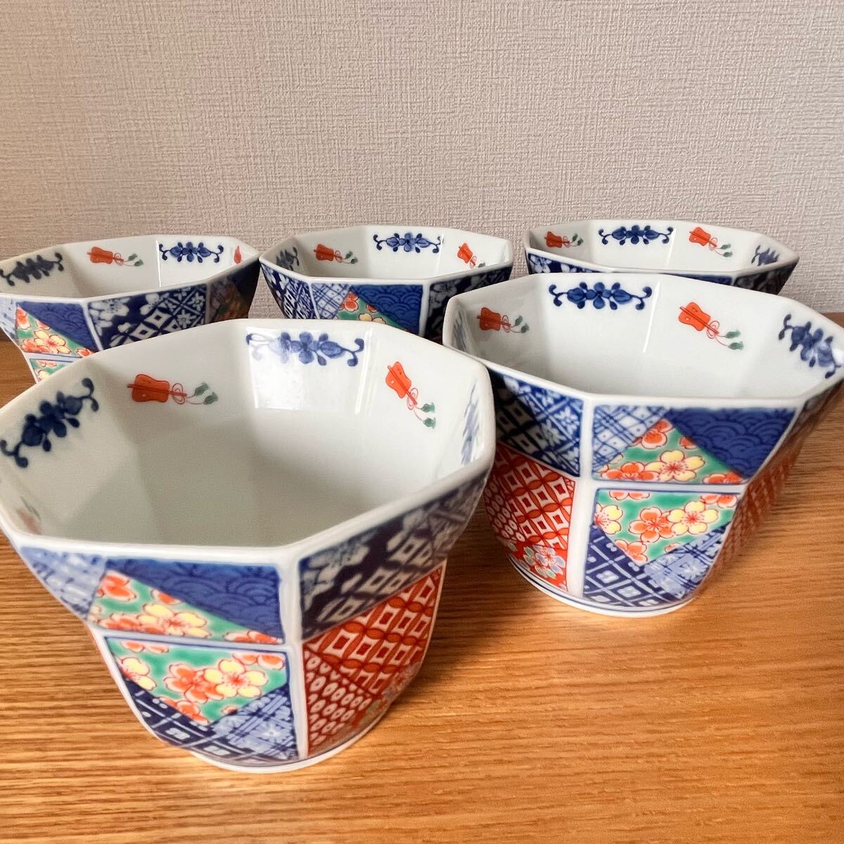 - レア 大相撲 枡席土産 小鉢セット 有田焼 八角鉢 和柄 和食器 色絵 六角小鉢 小鉢揃