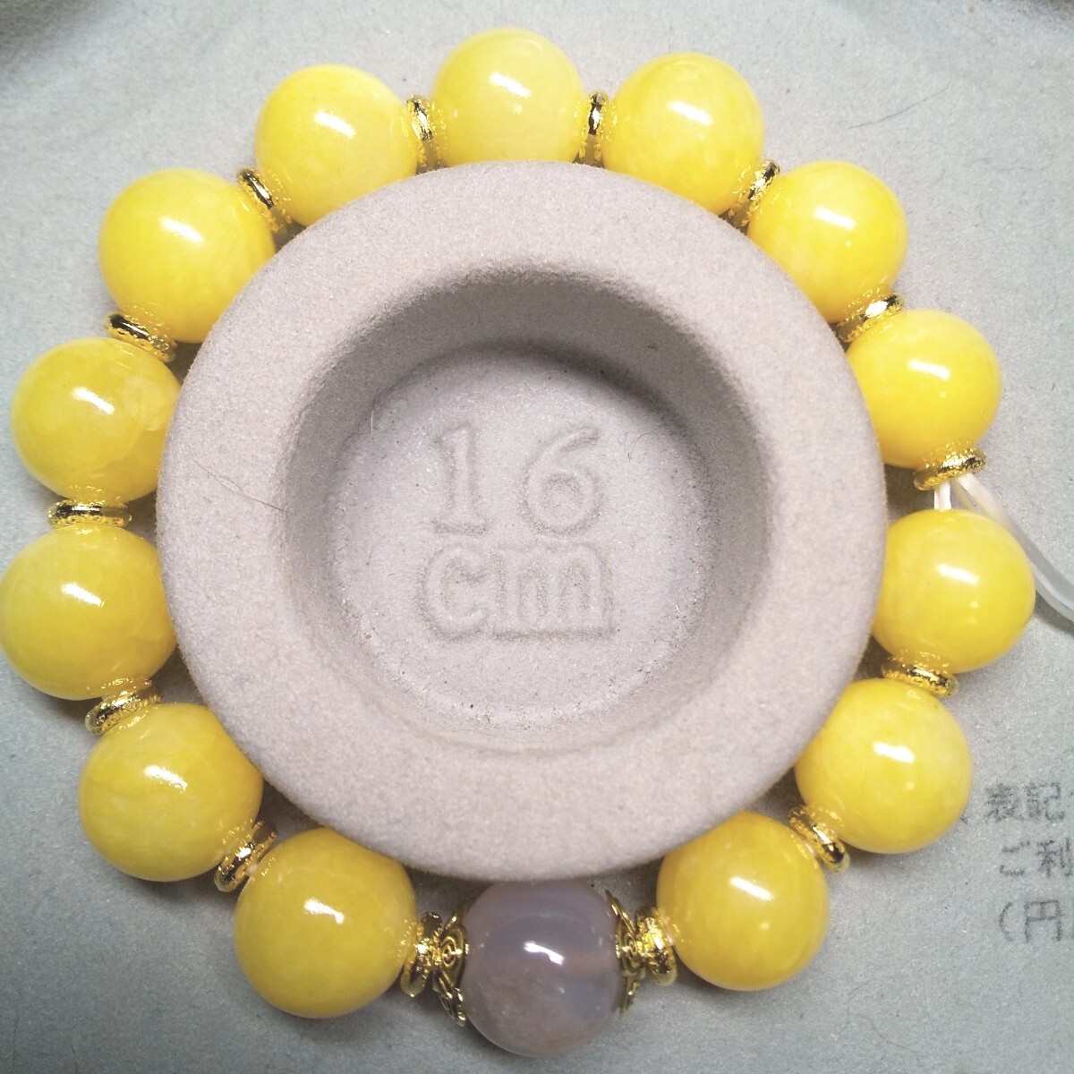 > 春石 天然石 桜めのう + イエローカルセドニー ブレスレッド 12㎜玉 内径約15,5cm 思いやり 自信、健康の守り石、女性Mサイズブリコラ屋