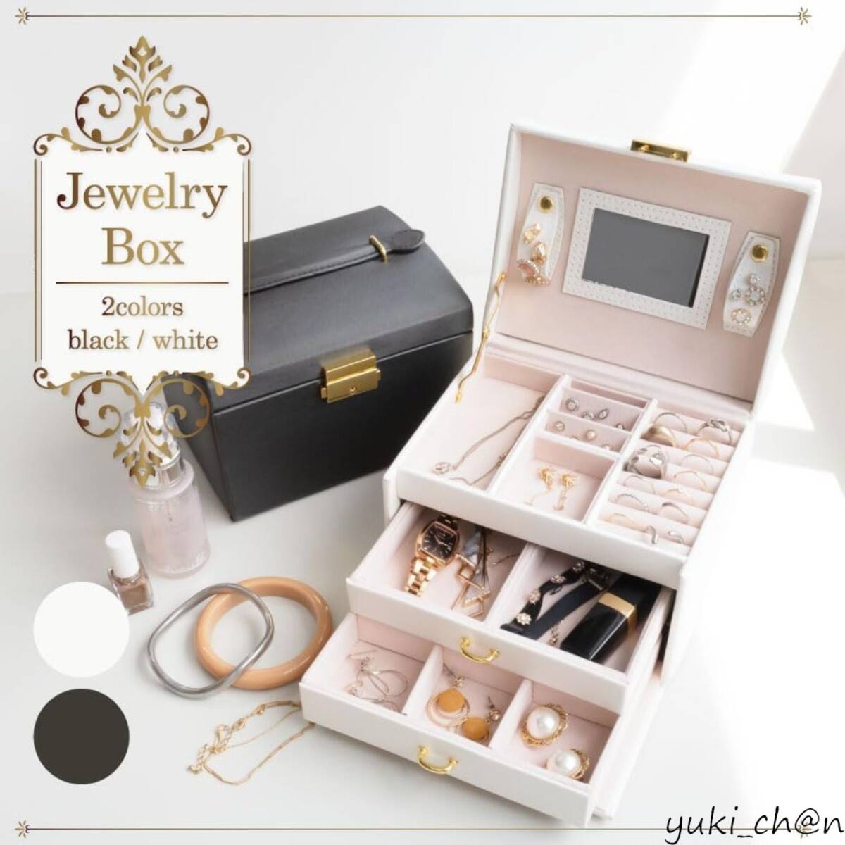 - ジュエリーボックス アクセサリーケース ジュエリー収納 宝石箱 ホワイト 大容量 ミラー付き 3段タイプ 鍵付き プレゼント