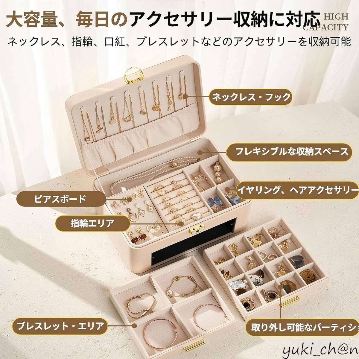 - ジュエリーボックス ジュエリーケース 宝石箱 ジュエリー収納 小物入れ ベージュ 大容量 引き出し 鍵付き 持ち運び ギフト