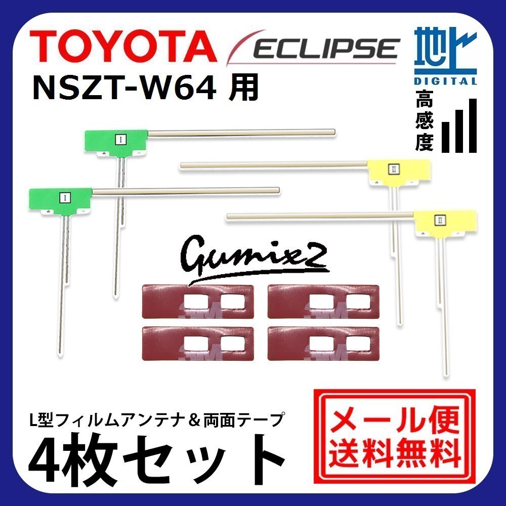 > NSZT-W64 用 メール便 送料無料 トヨタ L型 フィルムアンテナ 両面テープ 4枚 セット 強力 3M 交換 地デジ ナビ 載せ替え