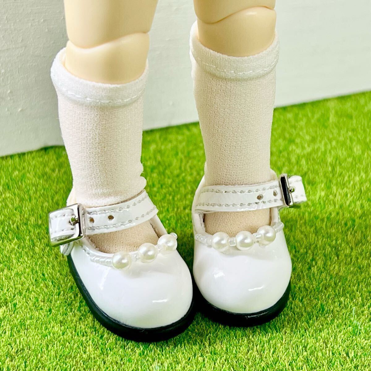 - 【精天使用】ホワイト ストラップ シューズ 靴 白 樹脂パールビーズ